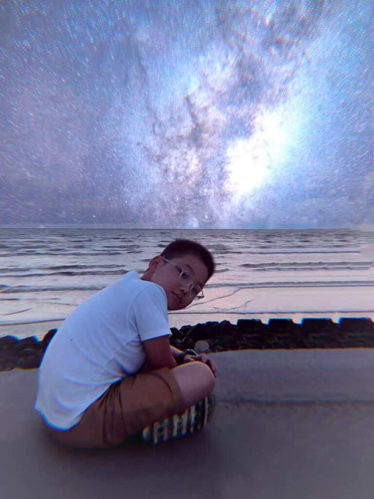 約 1 時間半後、ついに南通の黄金ビーチに到着した。車のドアを開けた瞬間、塩気のする潮風が思いがけず吹き付けてきた。娘は先に車から飛び降り、夜空を見上げた時、思わず「わあ」と叫んだ。それは都市では見たことのない星空だった —— ネオンの妨害がなく、満天の星はこぼれたダイヤのように、濃い青の夜空に密にちりばめられていて、天の川の輪郭がはっきりと見え、まるで手を伸ばせば届きそうだった。娘はすぐにスマホを取り出し、この感動的な景色を撮ろうとしたが、スマホのレンズではその美しさの何万分の一も捉えられないことに気づいた。息子も見とれて、小さな頭を上げながら「星がすごく多いね」とつぶやき、手で空を指差して、あれが北斗七星で、あれが牽牛星(けんぎゅうせい)だと言った。
