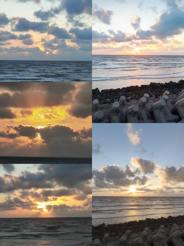 私たちは木製の遊歩道に沿ってゆっくり海へ向かった。足元の干潟は柔らかく、踏むと小さな穴ができた。きれいな岩場を見つけて座り、静かに日の出を待った。娘は私のそばに寄り添い、小声で「ママ、こんなに多くの星を見るのは初めてだよ、すごくきれい」と言った。