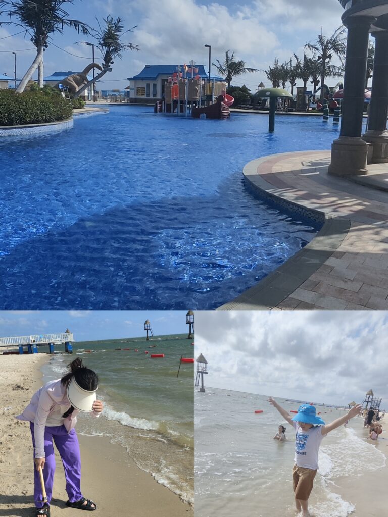 簡単な朝ご飯の後、私たちは車で恒大海上ヴェネツィアへ向かった。車が止まると、子供たちは檻から逃れた小鳥のようにビーチへ向かい、砂の城を作り、波を追いかけ、明るい笑い声が海岸全体に響いた。太陽の下で戯れて追いかけっこをする子供たちの姿を見ながら、私は夫と目を合わせて笑い、「幸せ」という温かい気持ちで心が満たされた。