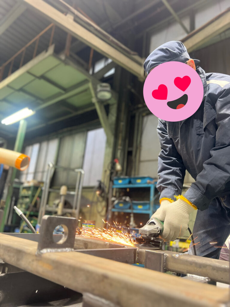 火花が散る現場ですが、心はいつも穏やかに、毎日笑いながら、そして声をかけあいながら今日もモノづくりに向き合っています。