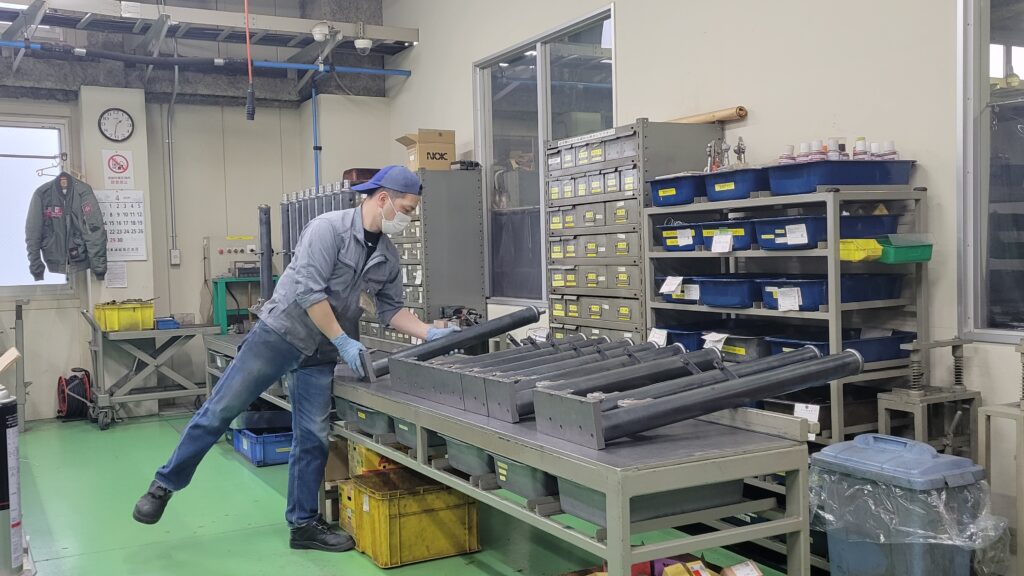 我们制造部泵与气缸组负责液压部分“泵与气缸”的制造工序,这是本公司产品“举起重物”这一优势的“心脏”所在。